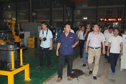 ? ? ?7月11日下午,獲嘉縣工信委、輝縣市工信委一行20余人來到明星機械進行參觀調研。我公司楊富春總經理帶領大家參觀了電氣車間生產現場、機器人焊接工作站和產品包裝區。參觀期間,楊總詳細介紹了企業生產經營和產品市場開拓情況,工信委領導對我公司生產現場、產品質量和先進工藝給予了積**的評價。